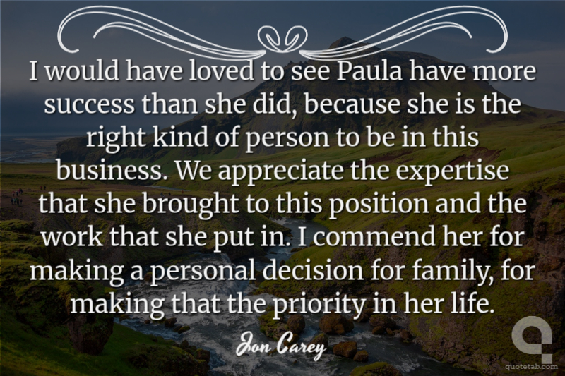 I would have loved to see Paula have more success than she did, because she is the right kind of person to be in this business. We appreciate the expertise that she brought to this position and the work that she put in. I commend her for making a personal decision for family, for making that the priority in her life.