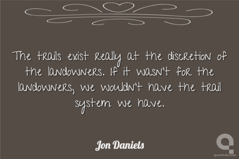 The trails exist really at the discretion of the landowners. If it wasn't for the landowners, we wouldn't have the trail system we have.