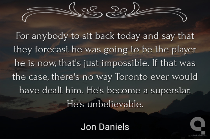 For anybody to sit back today and say that they forecast he was going to be the player he is now, that's just impossible. If that was the case, there's no way Toronto ever would have dealt him. He's become a superstar. He's unbelievable.