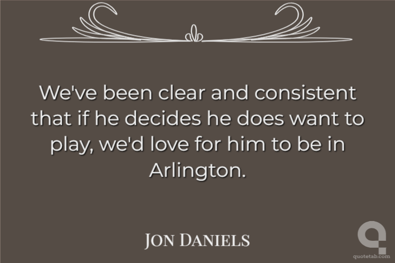 We've been clear and consistent that if he decides he does want to play, we'd love for him to be in Arlington.