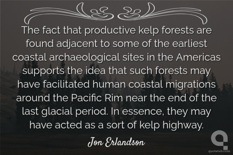The fact that productive kelp forests are found adjacent to some of the earliest coastal archaeological sites in the Americas supports the idea that such forests may have facilitated human coastal migrations around the Pacific Rim near the end of the last glacial period. In essence, they may have acted as a sort of kelp highway.