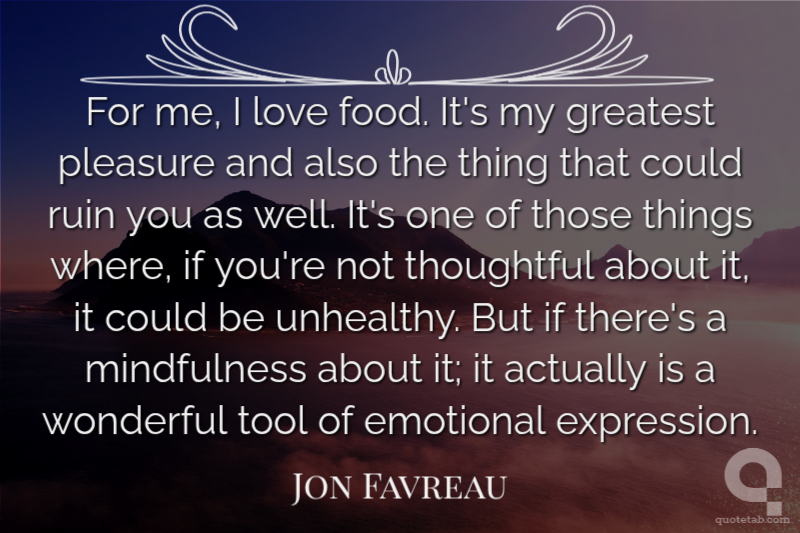 For me, I love food. It's my greatest pleasure and also the thing that could ruin you as well. It's one of those things where, if you're not thoughtful about it, it could be unhealthy. But if there's a mindfulness about it; it actually is a wonderful tool of emotional expression.