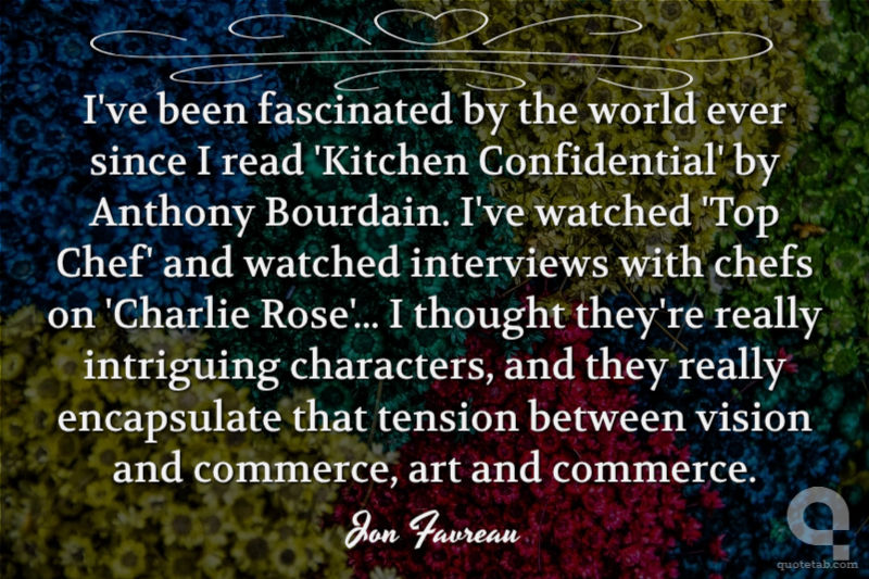 I've been fascinated by the world ever since I read 'Kitchen Confidential' by Anthony Bourdain. I've watched 'Top Chef' and watched interviews with chefs on 'Charlie Rose'... I thought they're really intriguing characters, and they really encapsulate that tension between vision and commerce, art and commerce.