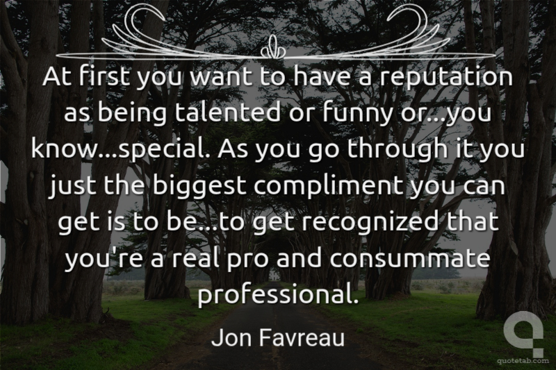 At first you want to have a reputation as being talented or funny or...you know...special. As you go through it you just the biggest compliment you can get is to be...to get recognized that you're a real pro and consummate professional.