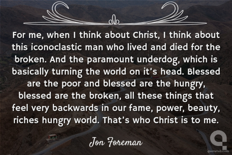 For me, when I think about Christ, I think about this iconoclastic man who lived and died for the broken. And the paramount underdog, which is basically turning the world on it’s head. Blessed are the poor and blessed are the hungry, blessed are the broken, all these things that feel very backwards in our fame, power, beauty, riches hungry world. That’s who Christ is to me.