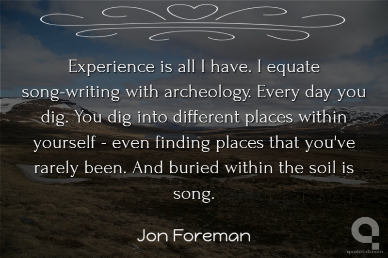 Experience is all I have. I equate song-writing with archeology. Every day you dig. You dig into different places within yourself - even finding places that you've rarely been. And buried within the soil is song.