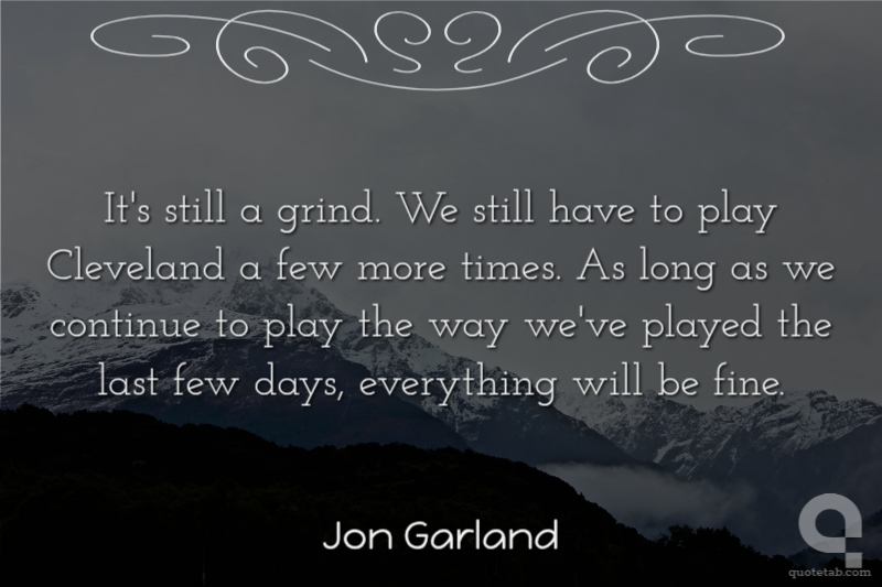 It's still a grind. We still have to play Cleveland a few more times. As long as we continue to play the way we've played the last few days, everything will be fine.
