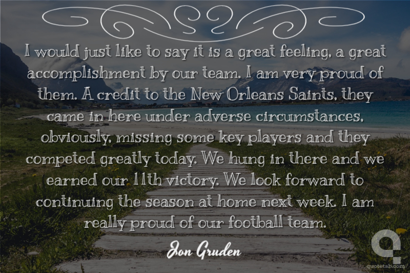 I would just like to say it is a great feeling, a great accomplishment by our team. I am very proud of them. A credit to the New Orleans Saints, they came in here under adverse circumstances, obviously, missing some key players and they competed greatly today. We hung in there and we earned our 11th victory. We look forward to continuing the season at home next week. I am really proud of our football team.