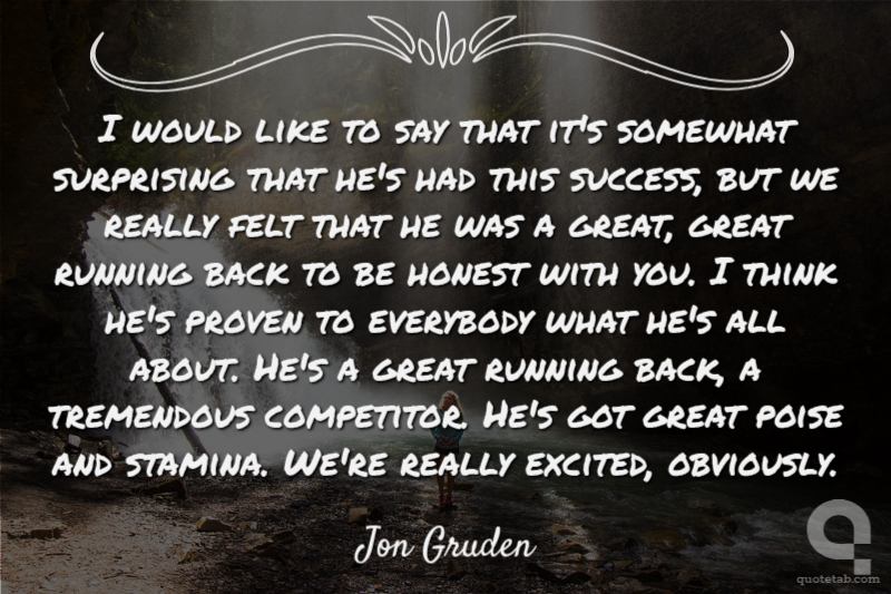 I would like to say that it's somewhat surprising that he's had this success, but we really felt that he was a great, great running back to be honest with you. I think he's proven to everybody what he's all about. He's a great running back, a tremendous competitor. He's got great poise and stamina. We're really excited, obviously.