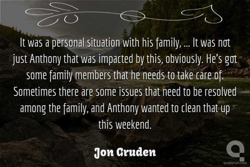 It was a personal situation with his family, ... It was not just Anthony that was impacted by this, obviously. He's got some family members that he needs to take care of. Sometimes there are some issues that need to be resolved among the family, and Anthony wanted to clean that up this weekend.