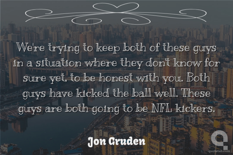 We're trying to keep both of these guys in a situation where they don't know for sure yet, to be honest with you. Both guys have kicked the ball well. These guys are both going to be NFL kickers.