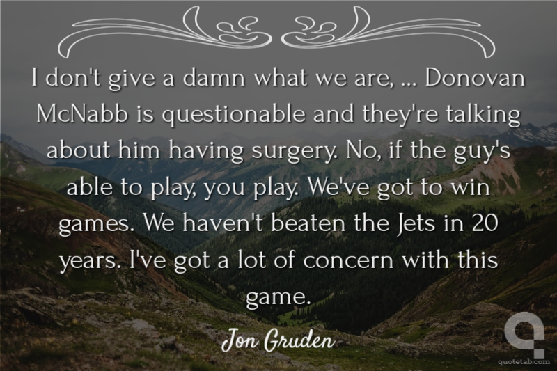 I don't give a damn what we are, ... Donovan McNabb is questionable and they're talking about him having surgery. No, if the guy's able to play, you play. We've got to win games. We haven't beaten the Jets in 20 years. I've got a lot of concern with this game.