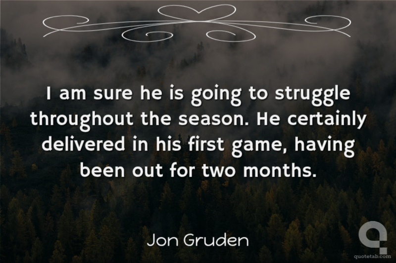I am sure he is going to struggle throughout the season. He certainly delivered in his first game, having been out for two months.