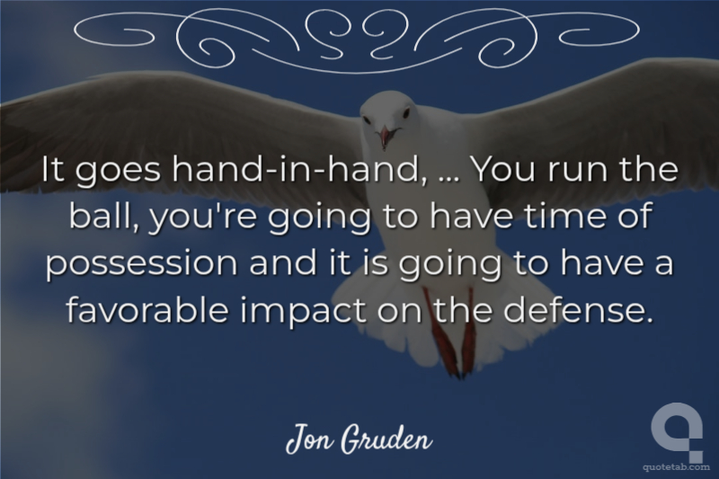 It goes hand-in-hand, ... You run the ball, you're going to have time of possession and it is going to have a favorable impact on the defense.