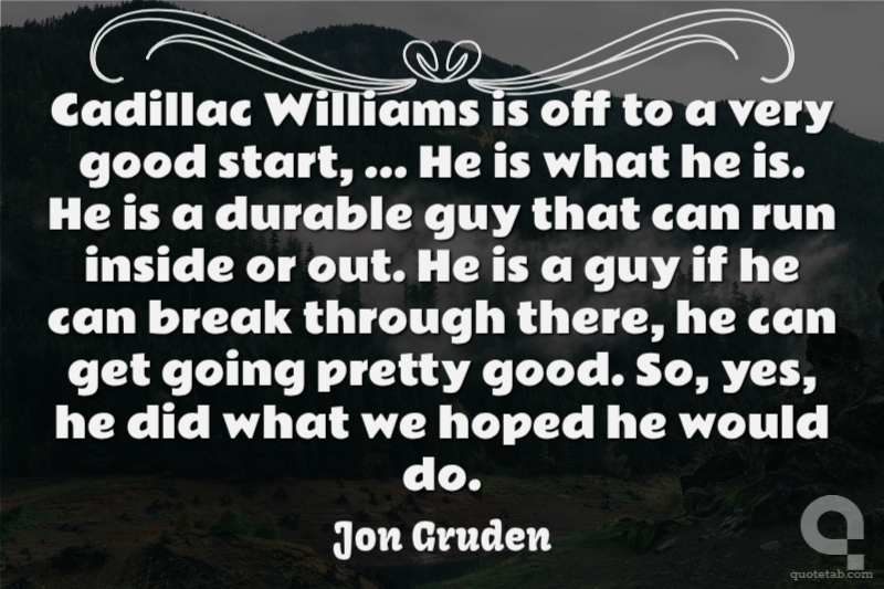 Cadillac Williams is off to a very good start, ... He is what he is. He is a durable guy that can run inside or out. He is a guy if he can break through there, he can get going pretty good. So, yes, he did what we hoped he would do.