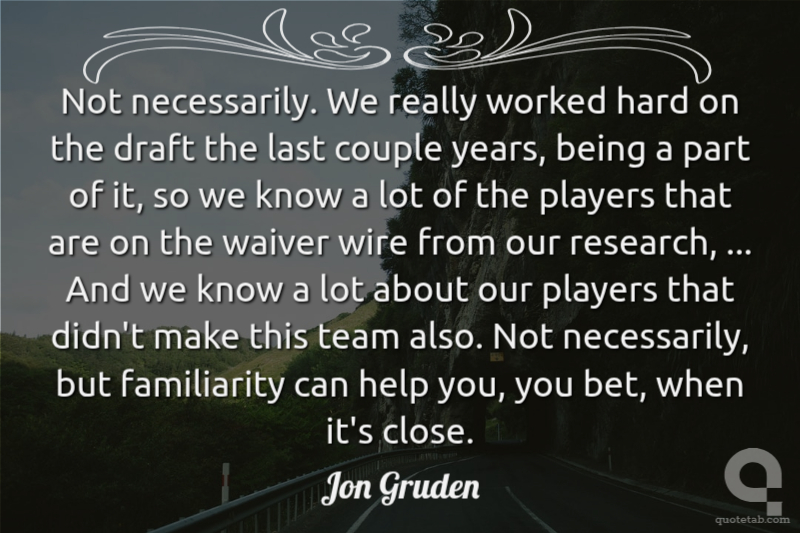 Not necessarily. We really worked hard on the draft the last couple years, being a part of it, so we know a lot of the players that are on the waiver wire from our research, ... And we know a lot about our players that didn't make this team also. Not necessarily, but familiarity can help you, you bet, when it's close.