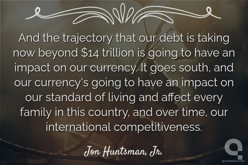 And the trajectory that our debt is taking now beyond $14 trillion is going to have an impact on our currency. It goes south, and our currency's going to have an impact on our standard of living and affect every family in this country, and over time, our international competitiveness.