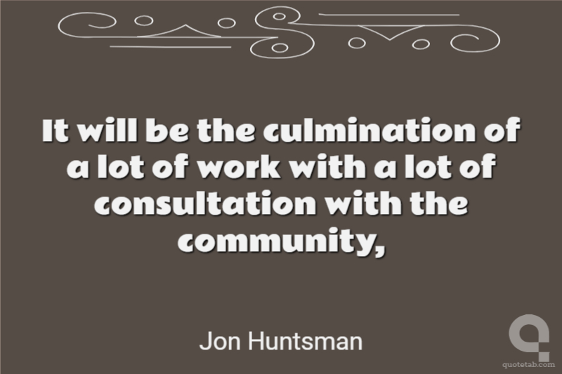 It will be the culmination of a lot of work with a lot of consultation with the community,