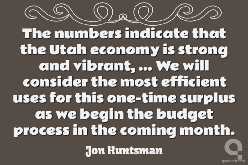 The numbers indicate that the Utah economy is strong and vibrant, ... We will consider the most efficient uses for this one-time surplus as we begin the budget process in the coming month.