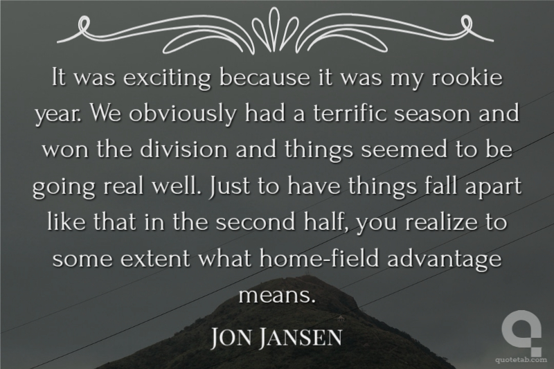 It was exciting because it was my rookie year. We obviously had a terrific season and won the division and things seemed to be going real well. Just to have things fall apart like that in the second half, you realize to some extent what home-field advantage means.