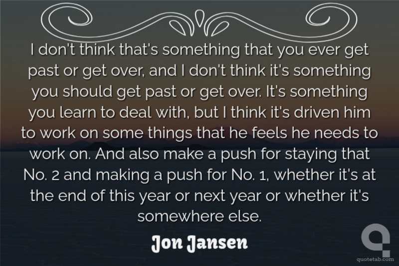I don't think that's something that you ever get past or get over, and I don't think it's something you should get past or get over. It's something you learn to deal with, but I think it's driven him to work on some things that he feels he needs to work on. And also make a push for staying that No. 2 and making a push for No. 1, whether it's at the end of this year or next year or whether it's somewhere else.
