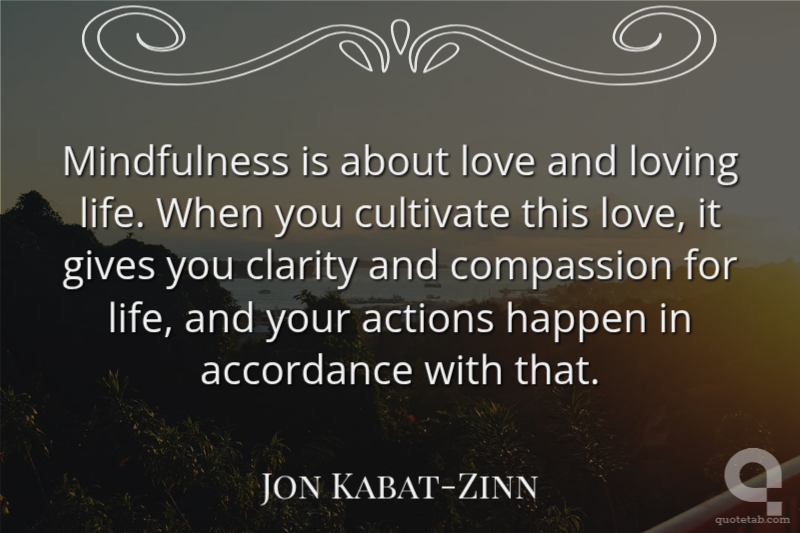 Mindfulness is about love and loving life. When you cultivate this love, it gives you clarity and compassion for life, and your actions happen in accordance with that.