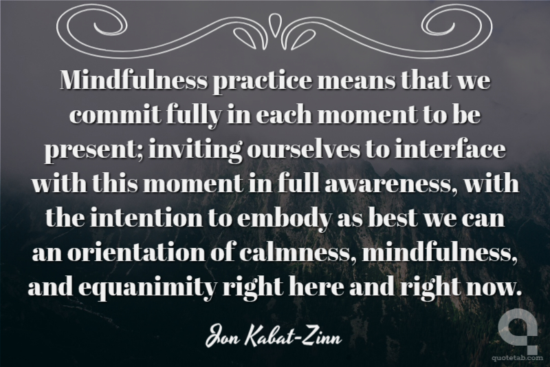 Mindfulness practice means that we commit fully in each moment to be present; inviting ourselves to interface with this moment in full awareness, with the intention to embody as best we can an orientation of calmness, mindfulness, and equanimity right here and right now.