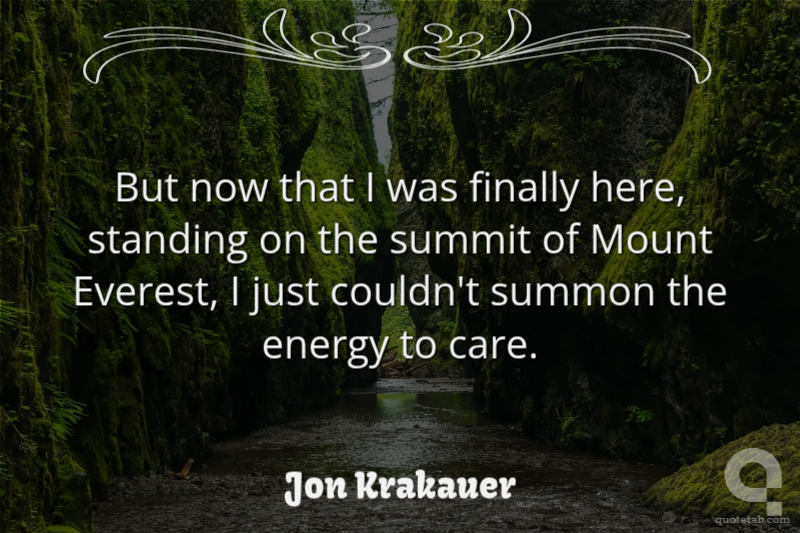 But now that I was finally here, standing on the summit of Mount Everest, I just couldn't summon the energy to care.