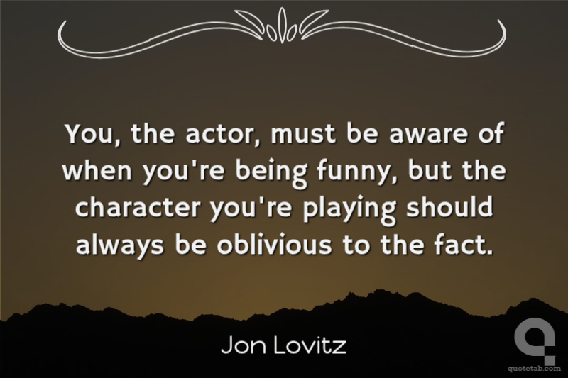 You, the actor, must be aware of when you're being funny, but the character you're playing should always be oblivious to the fact.