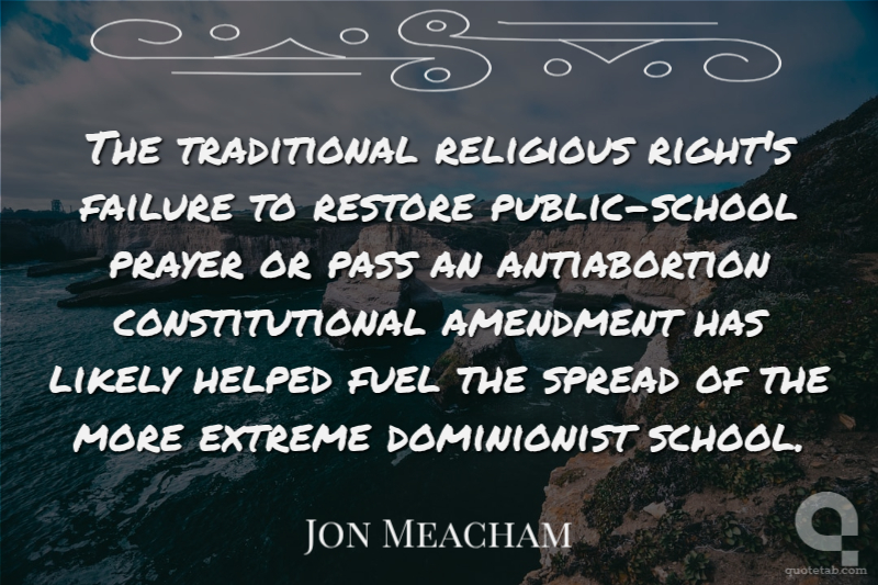 The traditional religious right's failure to restore public-school prayer or pass an antiabortion constitutional amendment has likely helped fuel the spread of the more extreme dominionist school.
