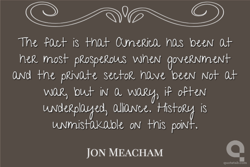 The fact is that America has been at her most prosperous when government and the private sector have been not at war, but in a wary, if often underplayed, alliance. History is unmistakable on this point.