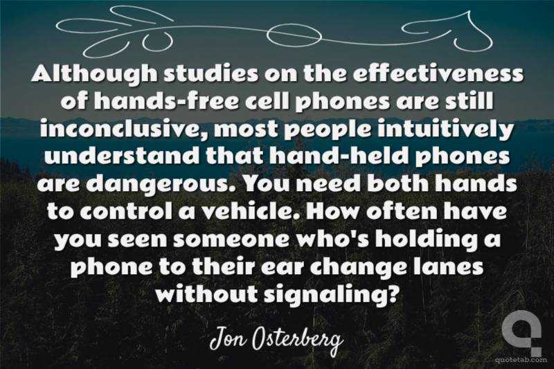 Although studies on the effectiveness of hands-free cell phones are still inconclusive, most people intuitively understand that hand-held phones are dangerous. You need both hands to control a vehicle. How often have you seen someone who's holding a phone to their ear change lanes without signaling?