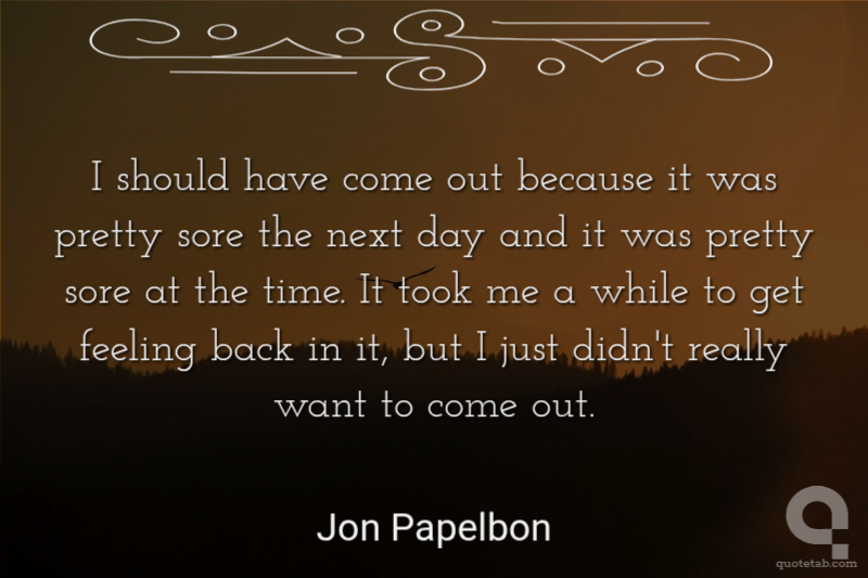 I should have come out because it was pretty sore the next day and it was pretty sore at the time. It took me a while to get feeling back in it, but I just didn't really want to come out.