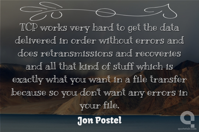 TCP works very hard to get the data delivered in order without errors and does retransmissions and recoveries and all that kind of stuff which is exactly what you want in a file transfer because so you don't want any errors in your file.