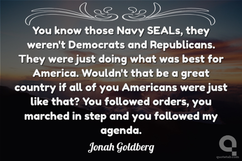 You know those Navy SEALs, they weren't Democrats and Republicans. They were just doing what was best for America. Wouldn't that be a great country if all of you Americans were just like that? You followed orders, you marched in step and you followed my agenda.