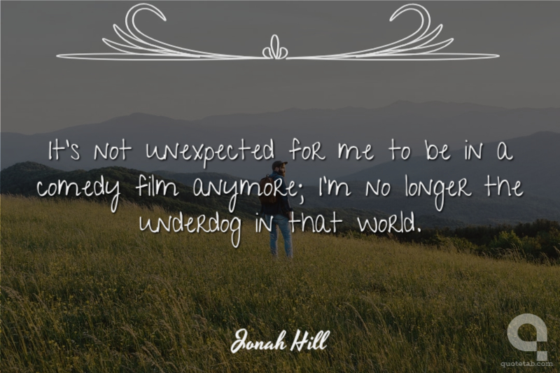 It's not unexpected for me to be in a comedy film anymore; I'm no longer the underdog in that world.