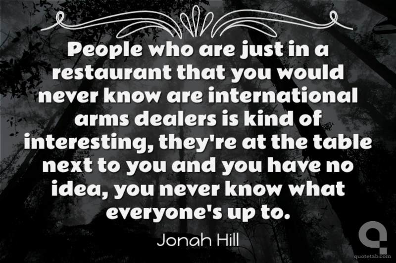 People who are just in a restaurant that you would never know are international arms dealers is kind of interesting, they're at the table next to you and you have no idea, you never know what everyone's up to.
