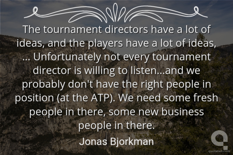 The tournament directors have a lot of ideas, and the players have a lot of ideas, ... Unfortunately not every tournament director is willing to listen...and we probably don't have the right people in position (at the ATP). We need some fresh people in there, some new business people in there.