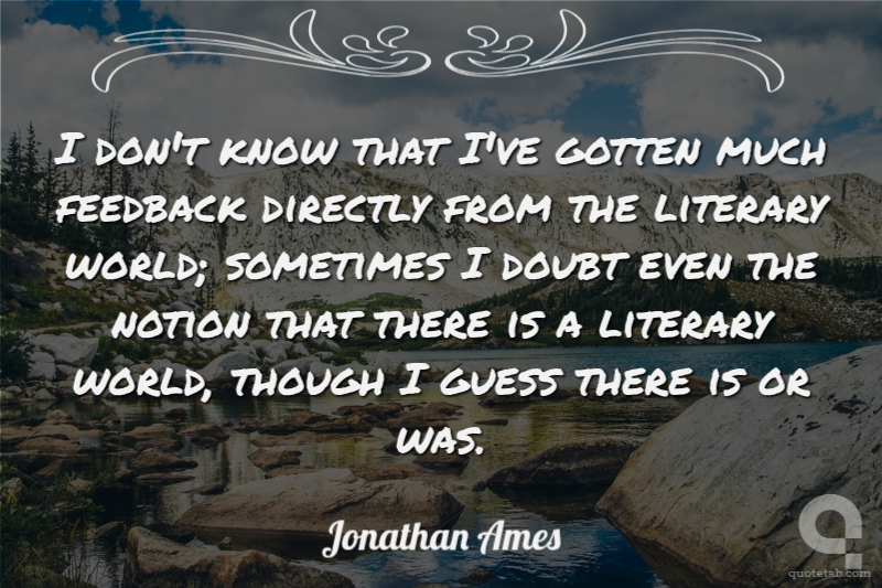 I don't know that I've gotten much feedback directly from the literary world; sometimes I doubt even the notion that there is a literary world, though I guess there is or was.