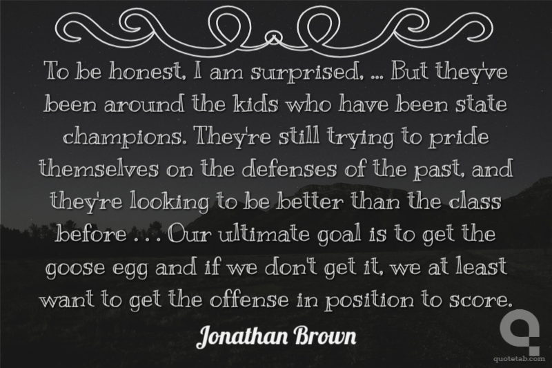 To be honest, I am surprised, ... But they've been around the kids who have been state champions. They're still trying to pride themselves on the defenses of the past, and they're looking to be better than the class before . . . Our ultimate goal is to get the goose egg and if we don't get it, we at least want to get the offense in position to score.