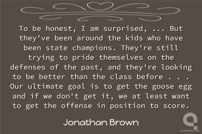 To be honest, I am surprised, ... But they've been around the kids who have been state champions. They're still trying to pride themselves on the defenses of the past, and they're looking to be better than the class before . . . Our ultimate goal is to get the goose egg and if we don't get it, we at least want to get the offense in position to score.