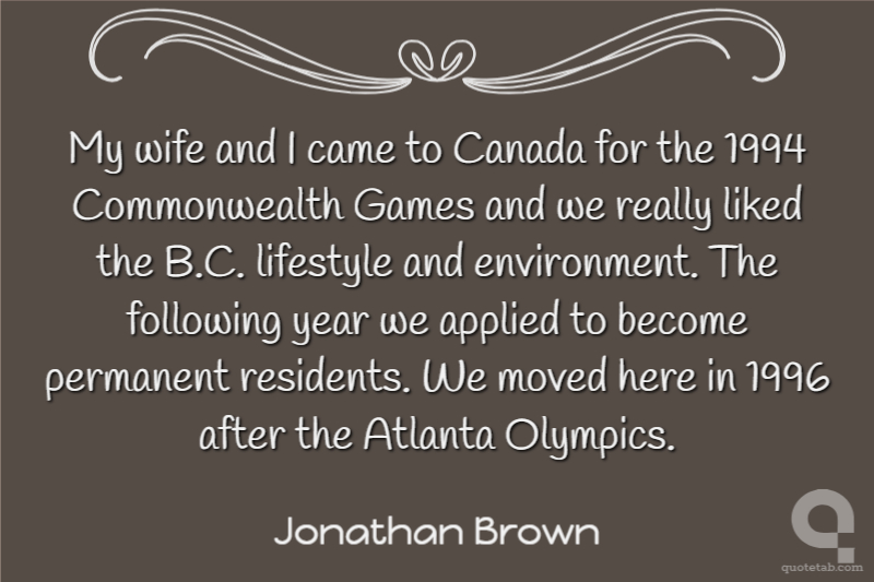 My wife and I came to Canada for the 1994 Commonwealth Games and we really liked the B.C. lifestyle and environment. The following year we applied to become permanent residents. We moved here in 1996 after the Atlanta Olympics.
