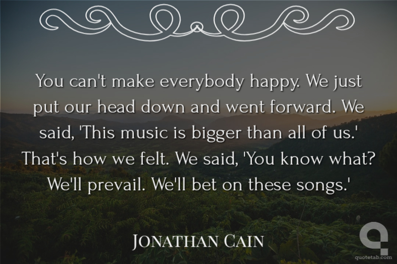 You can't make everybody happy. We just put our head down and went forward. We said, 'This music is bigger than all of us.' That's how we felt. We said, 'You know what? We'll prevail. We'll bet on these songs.'