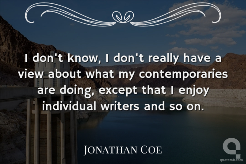 I don't know, I don't really have a view about what my contemporaries are doing, except that I enjoy individual writers and so on.