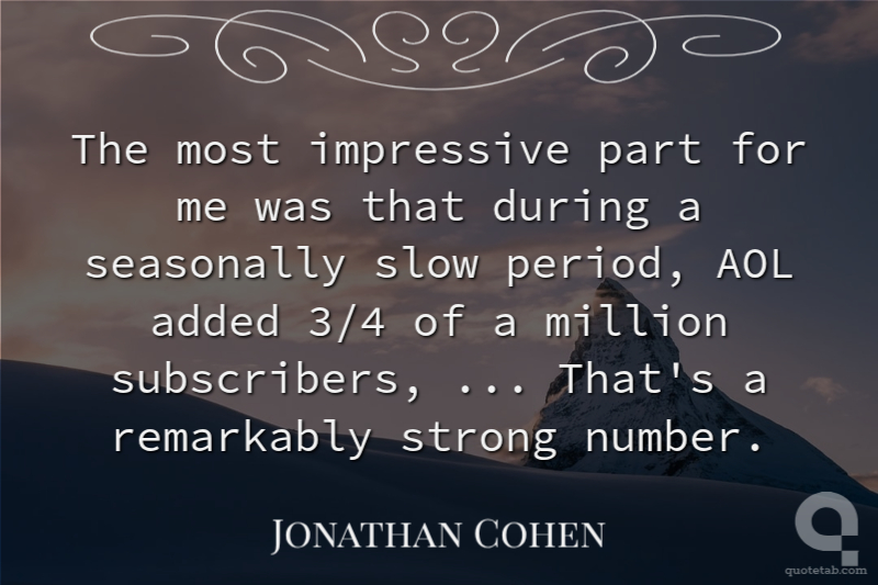 The most impressive part for me was that during a seasonally slow period, AOL added 3/4 of a million subscribers, ... That's a remarkably strong number.