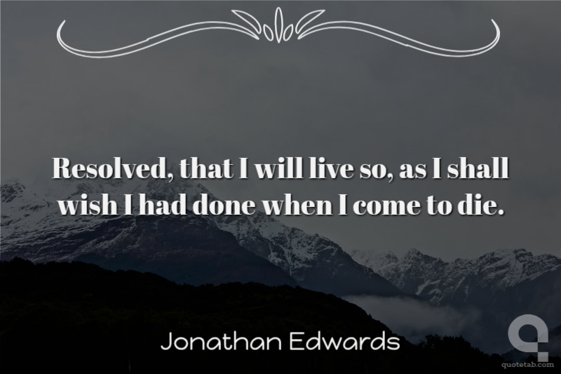 Resolved, that I will live so, as I shall wish I had done when I come to die.