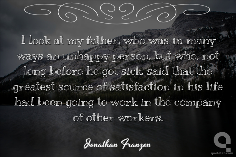 I look at my father, who was in many ways an unhappy person, but who, not long before he got sick, said that the greatest source of satisfaction in his life had been going to work in the company of other workers.