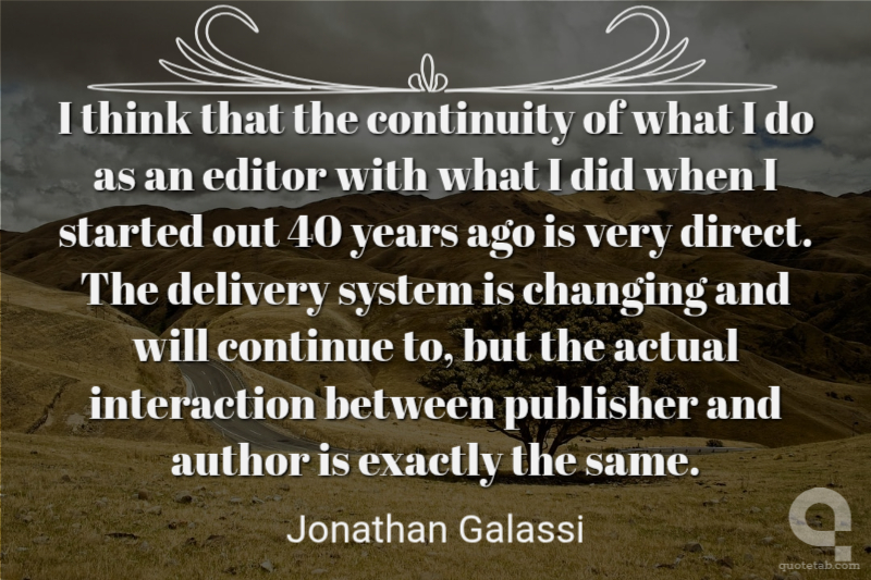 I think that the continuity of what I do as an editor with what I did when I started out 40 years ago is very direct. The delivery system is changing and will continue to, but the actual interaction between publisher and author is exactly the same.
