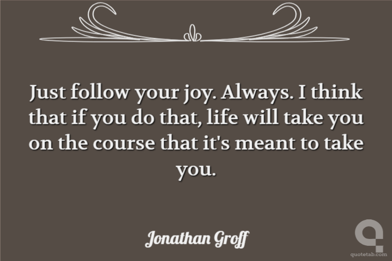 Just follow your joy. Always. I think that if you do that, life will take you on the course that it's meant to take you.