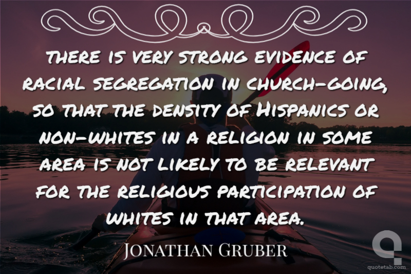 there is very strong evidence of racial segregation in church-going, so that the density of Hispanics or non-whites in a religion in some area is not likely to be relevant for the religious participation of whites in that area.
